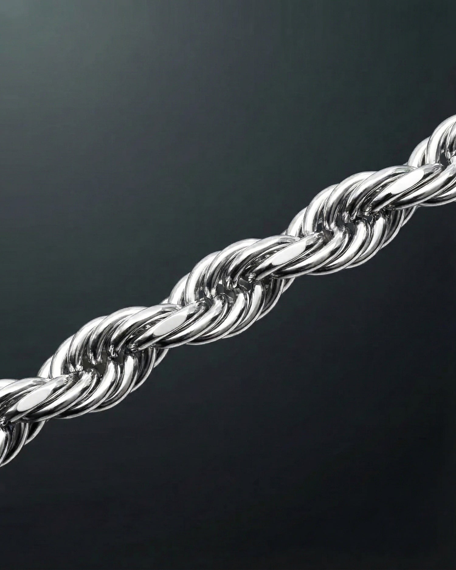 Slim rope structure finished in white gold with a tight, polished edge. Minimal width. Maximum polish.